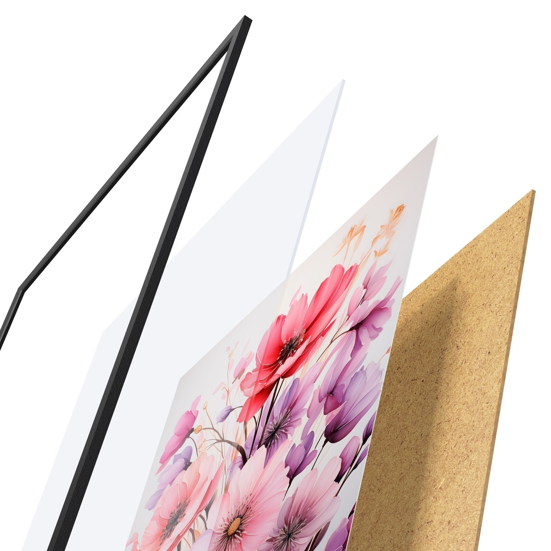 Plakát se skládá z rámu, plexiskla, tištěného obrazu a dřevotřískového podkladu. Díky úchytům na zadní straně lze plakát ihned zavěsit na zeď.
