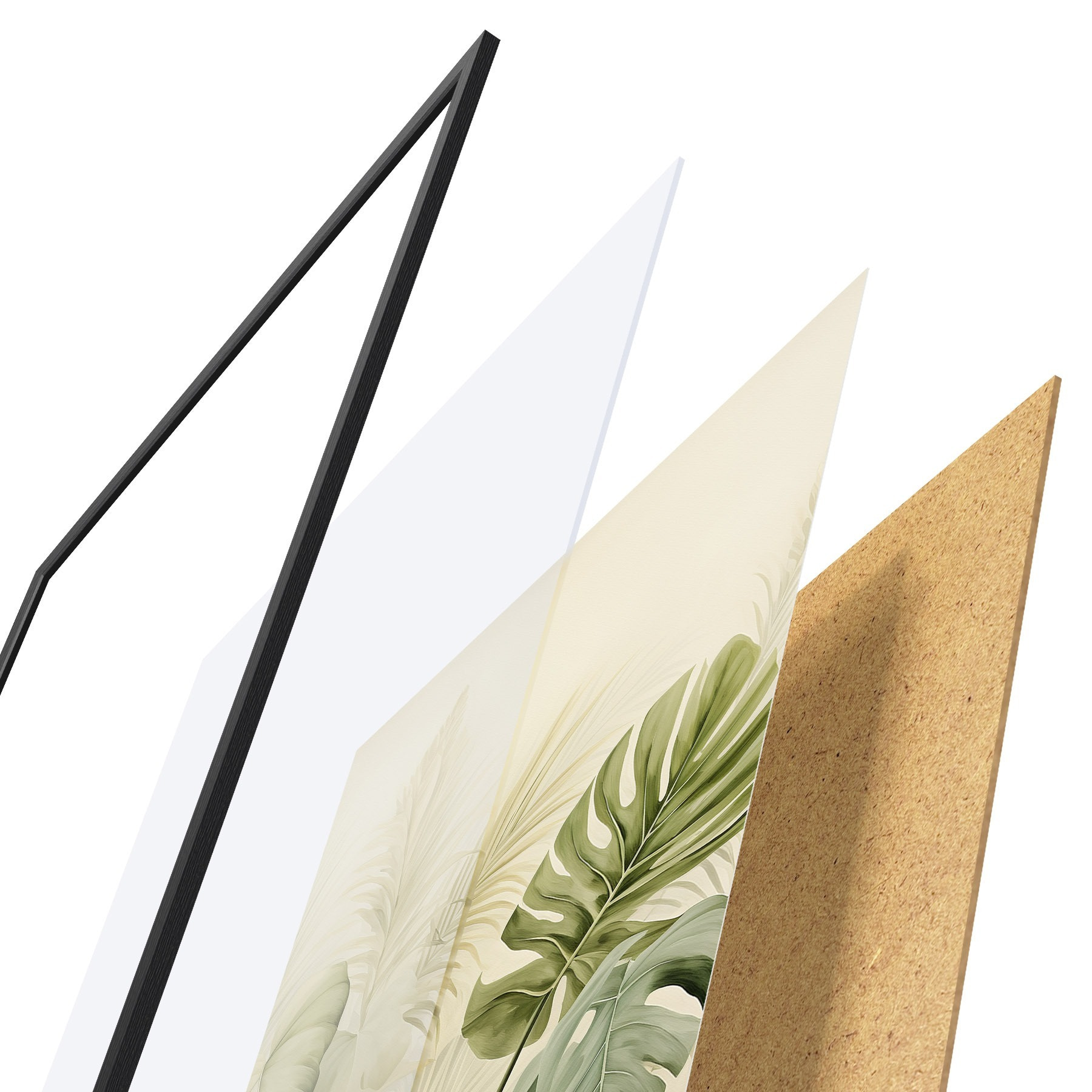Plakát se skládá z rámu, plexiskla, tištěného obrazu a dřevotřískového podkladu. Díky úchytům na zadní straně lze plakát ihned zavěsit na zeď.