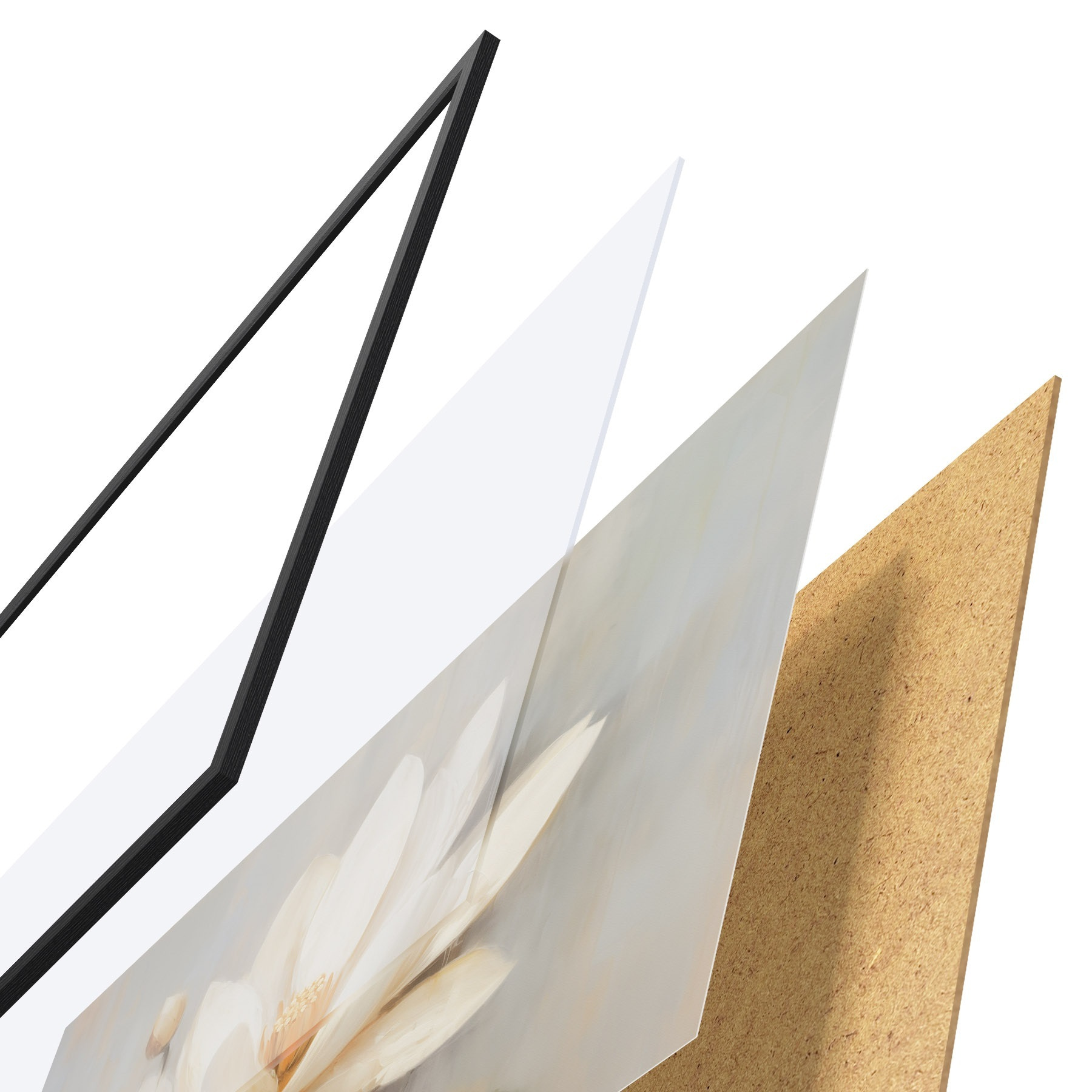 Plakát se skládá z rámu, plexiskla, tištěného obrazu a dřevotřískového podkladu. Díky úchytům na zadní straně lze plakát ihned zavěsit na zeď.