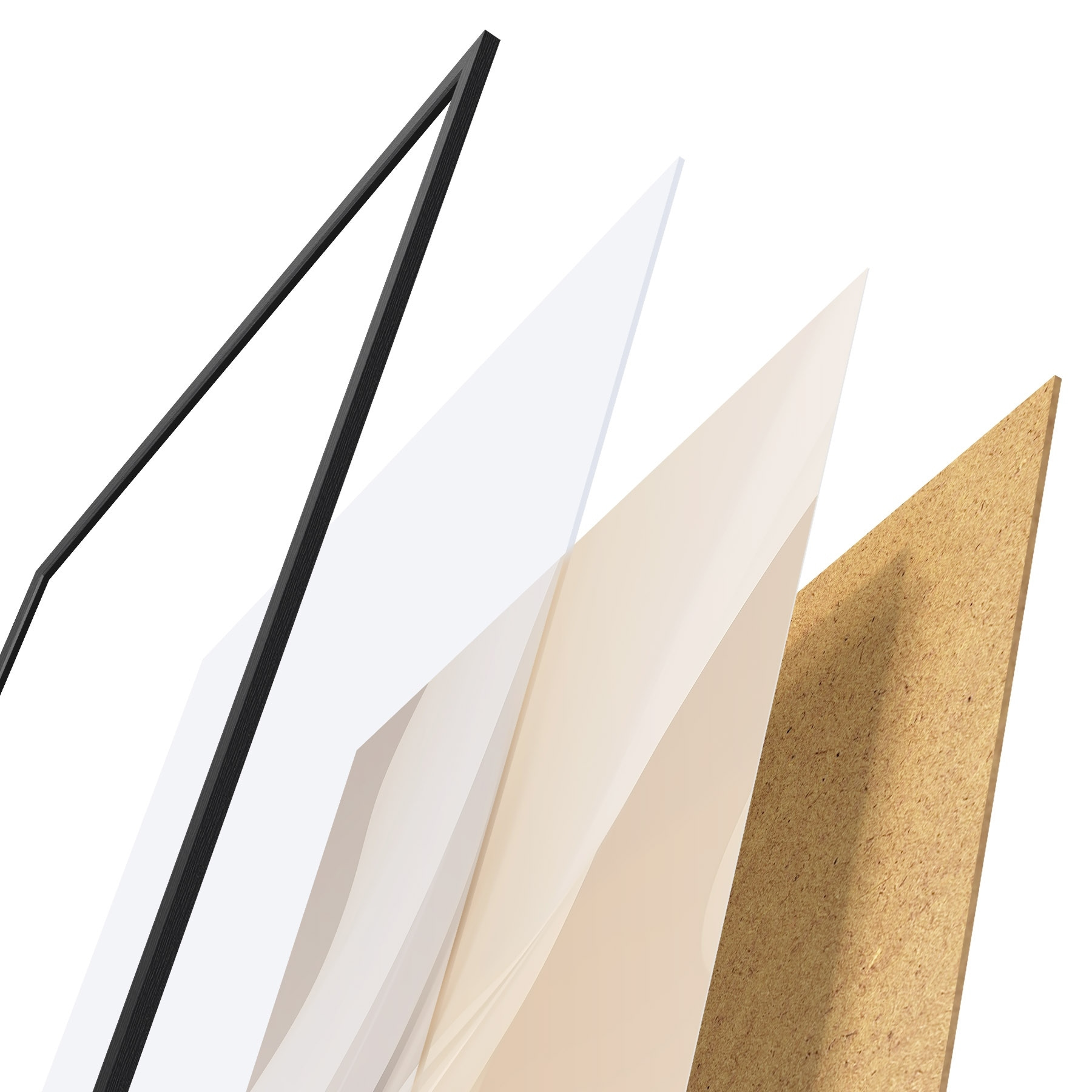 Plakát se skládá z rámu, plexiskla, tištěného obrazu a dřevotřískového podkladu. Díky úchytům na zadní straně lze plakát ihned zavěsit na zeď.
