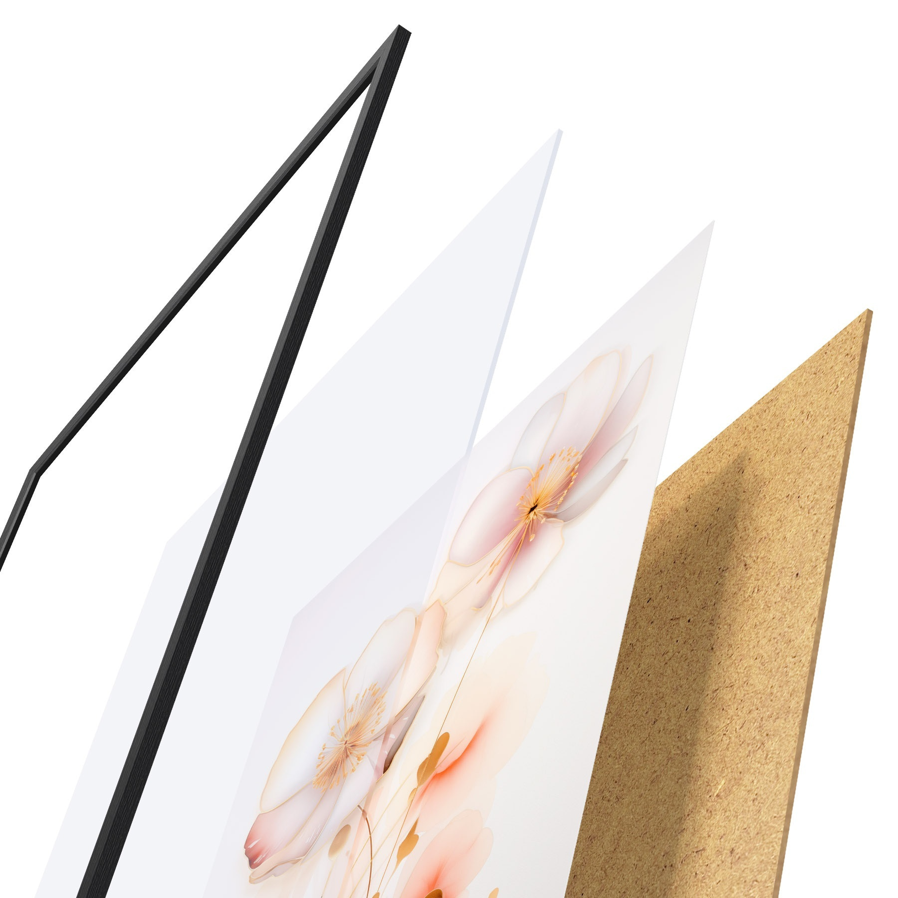 Plakát se skládá z rámu, plexiskla, tištěného obrazu a dřevotřískového podkladu. Díky úchytům na zadní straně lze plakát ihned zavěsit na zeď.