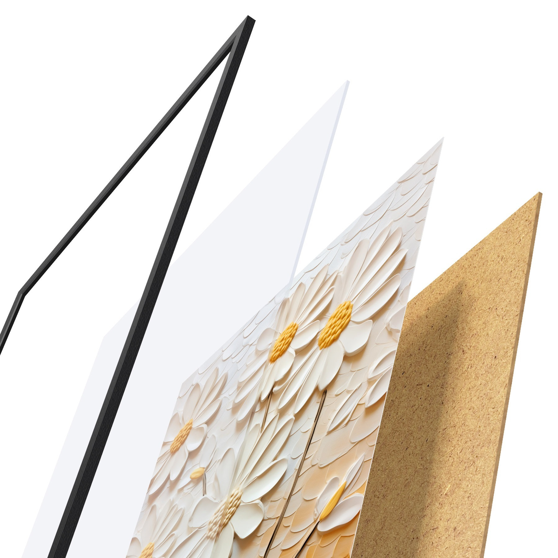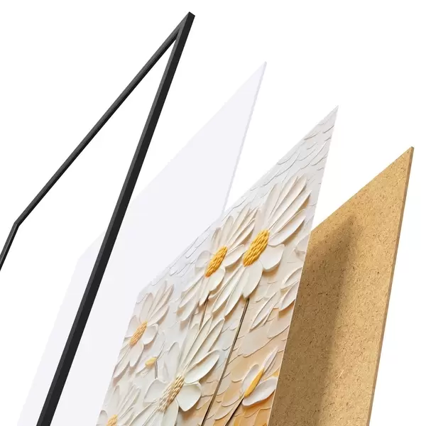 Plakát se skládá z rámu, plexiskla, tištěného obrazu a dřevotřískového podkladu. Díky úchytům na zadní straně lze plakát ihned zavěsit na zeď.