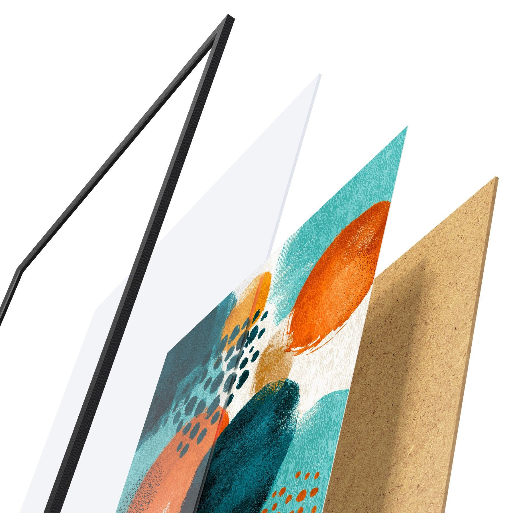 Plakát se skládá z rámu, plexiskla, tištěného obrazu a dřevotřískového podkladu. Díky úchytům na zadní straně lze plakát ihned zavěsit na zeď.