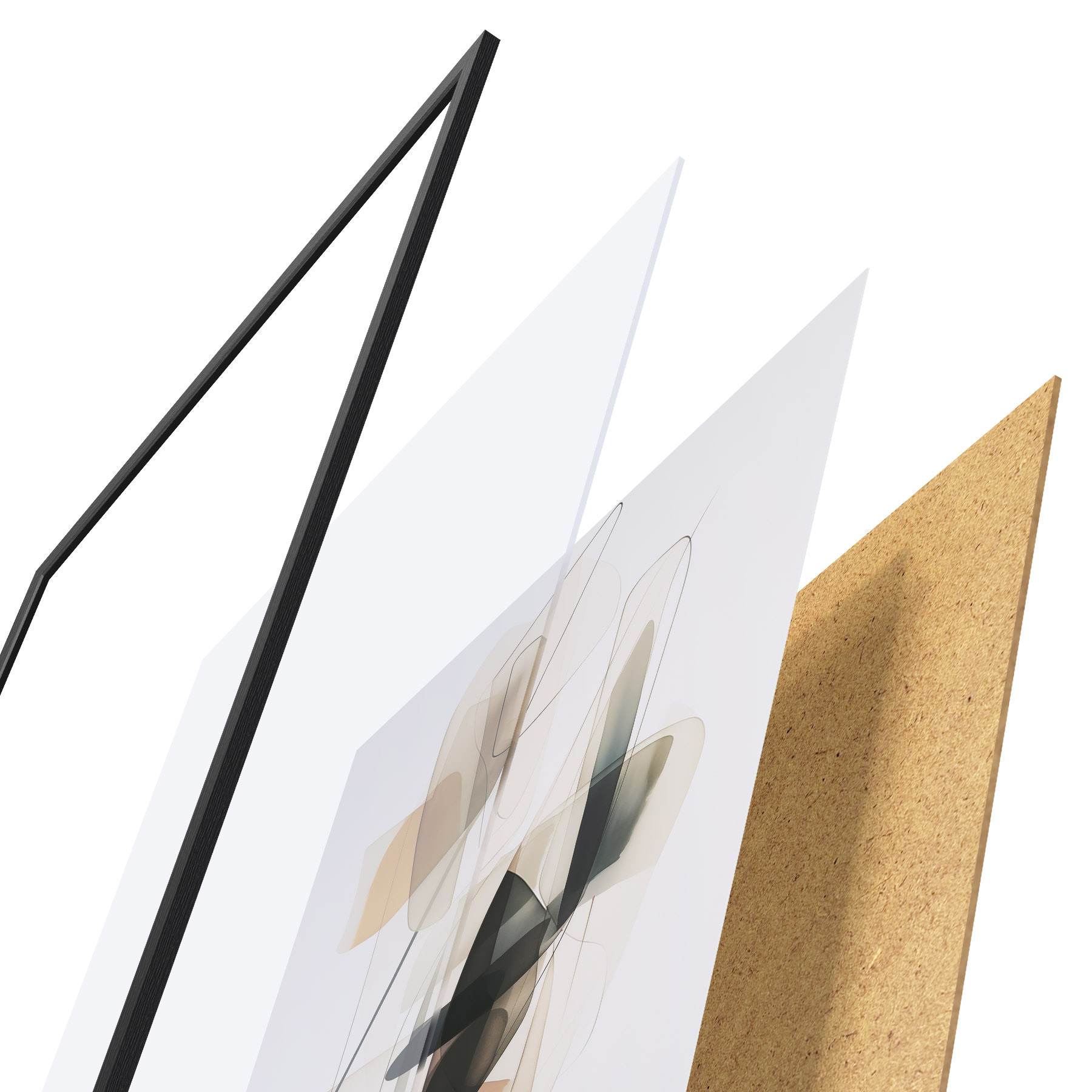 Plakát se skládá z rámu, plexiskla, tištěného obrazu a dřevotřískového podkladu. Díky úchytům na zadní straně lze plakát ihned zavěsit na zeď.