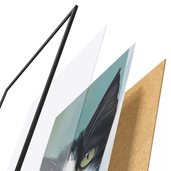 Plakát se skládá z rámu, plexiskla, tištěného obrazu a dřevotřískového podkladu. Díky úchytům na zadní straně lze plakát ihned zavěsit na zeď.