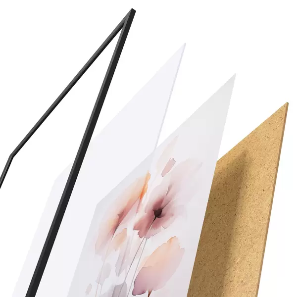 Plakát se skládá z rámu, plexiskla, tištěného obrazu a dřevotřískového podkladu. Díky úchytům na zadní straně lze plakát ihned zavěsit na zeď.