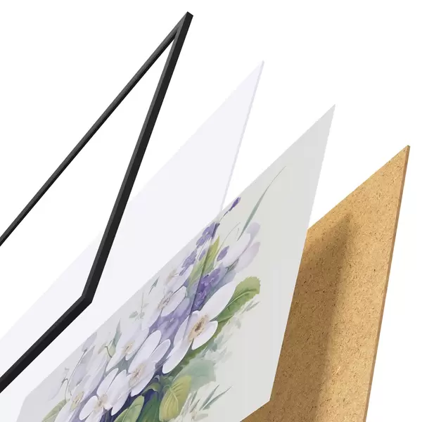 Plakát se skládá z rámu, plexiskla, tištěného obrazu a dřevotřískového podkladu. Díky úchytům na zadní straně lze plakát ihned zavěsit na zeď.