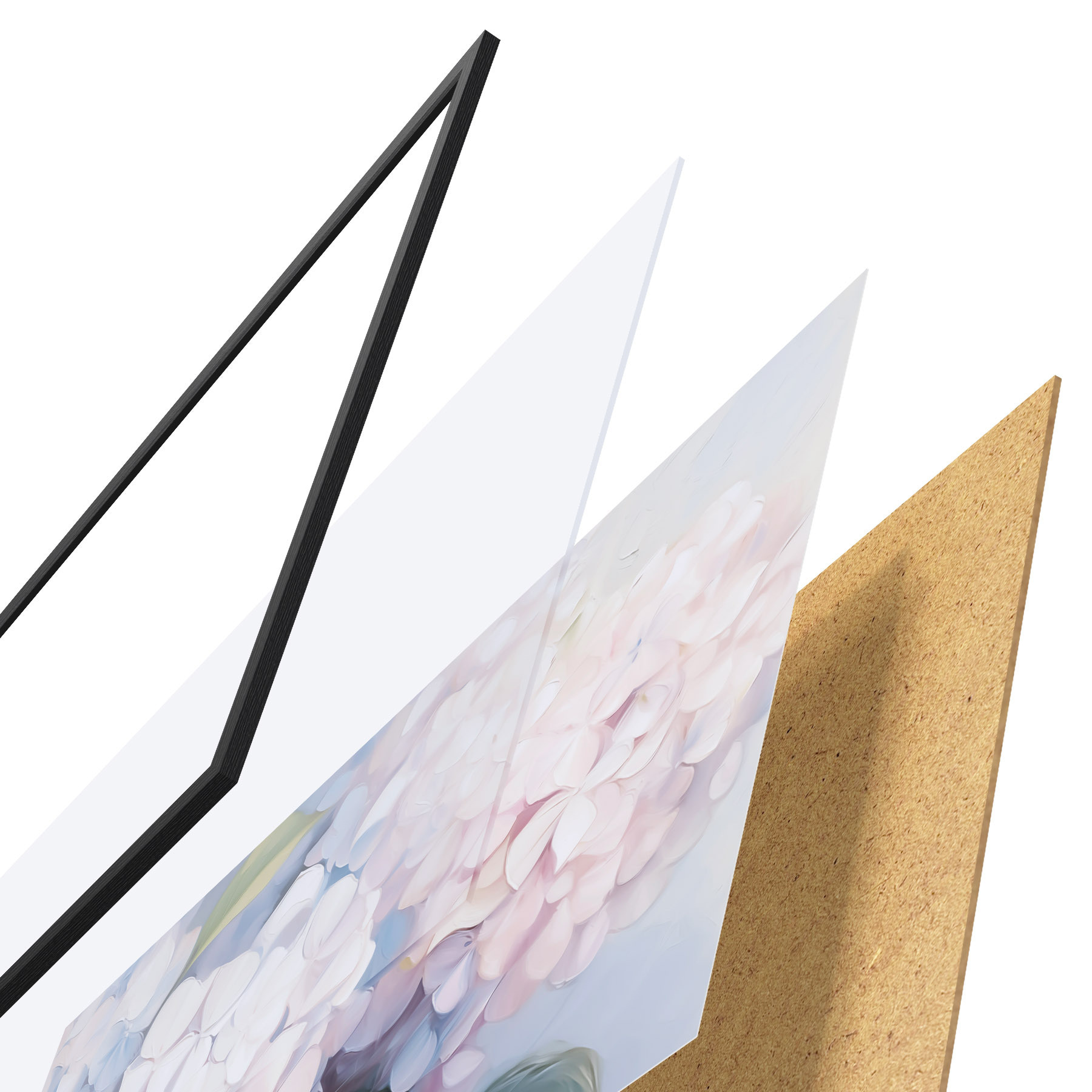 Plakát se skládá z rámu, plexiskla, tištěného obrazu a dřevotřískového podkladu. Díky úchytům na zadní straně lze plakát ihned zavěsit na zeď.