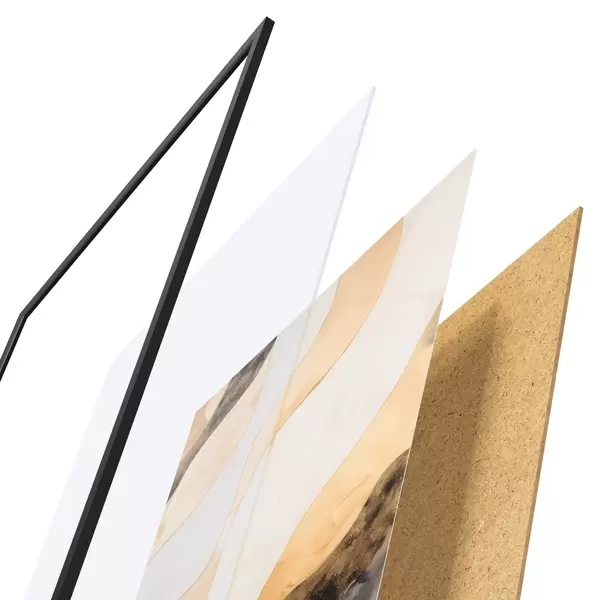 Plakát se skládá z rámu, plexiskla, tištěného obrazu a dřevotřískového podkladu. Díky úchytům na zadní straně lze plakát ihned zavěsit na zeď.