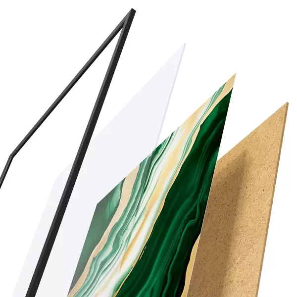 Plakát se skládá z rámu, plexiskla, tištěného obrazu a dřevotřískového podkladu. Díky úchytům na zadní straně lze plakát ihned zavěsit na zeď.