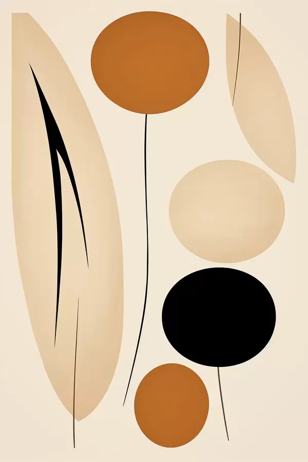 Poster Abstraktní kompozice s černými a oranžovými kruhy Č. f45700