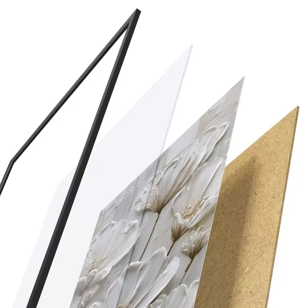 Plakát se skládá z rámu, plexiskla, tištěného obrazu a dřevotřískového podkladu. Díky úchytům na zadní straně lze plakát ihned zavěsit na zeď.