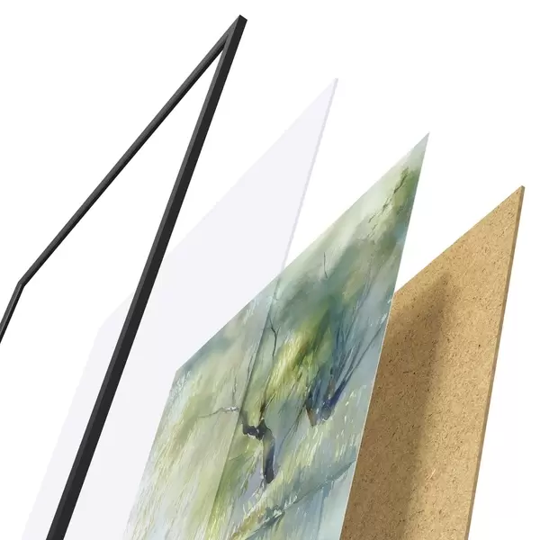 Plakát se skládá z rámu, plexiskla, tištěného obrazu a dřevotřískového podkladu. Díky úchytům na zadní straně lze plakát ihned zavěsit na zeď.