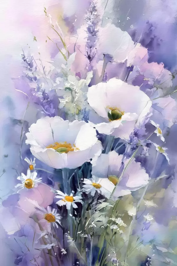 Poster akvarelová kytice v lila a bílých tónech Č. f45720
