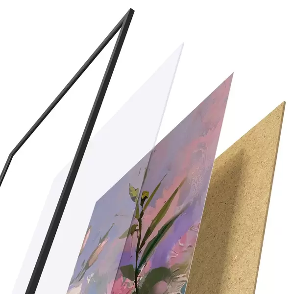 Plakát se skládá z rámu, plexiskla, tištěného obrazu a dřevotřískového podkladu. Díky úchytům na zadní straně lze plakát ihned zavěsit na zeď.