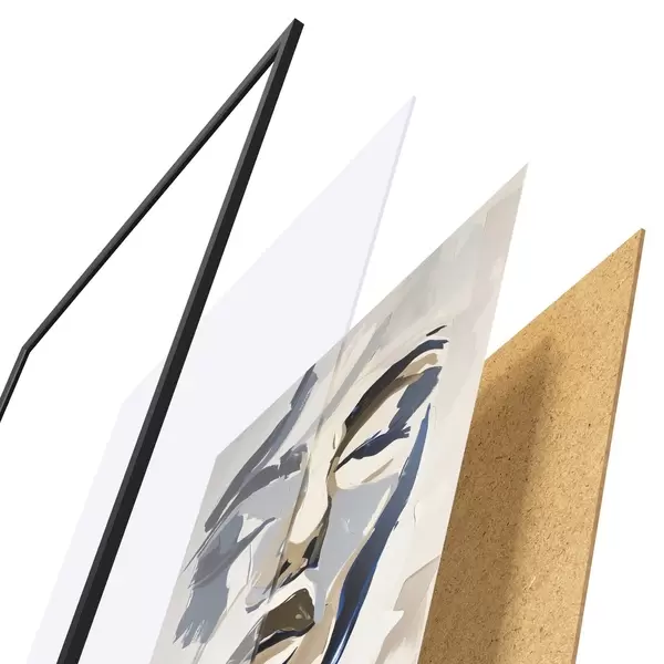 Plakát se skládá z rámu, plexiskla, tištěného obrazu a dřevotřískového podkladu. Díky úchytům na zadní straně lze plakát ihned zavěsit na zeď.