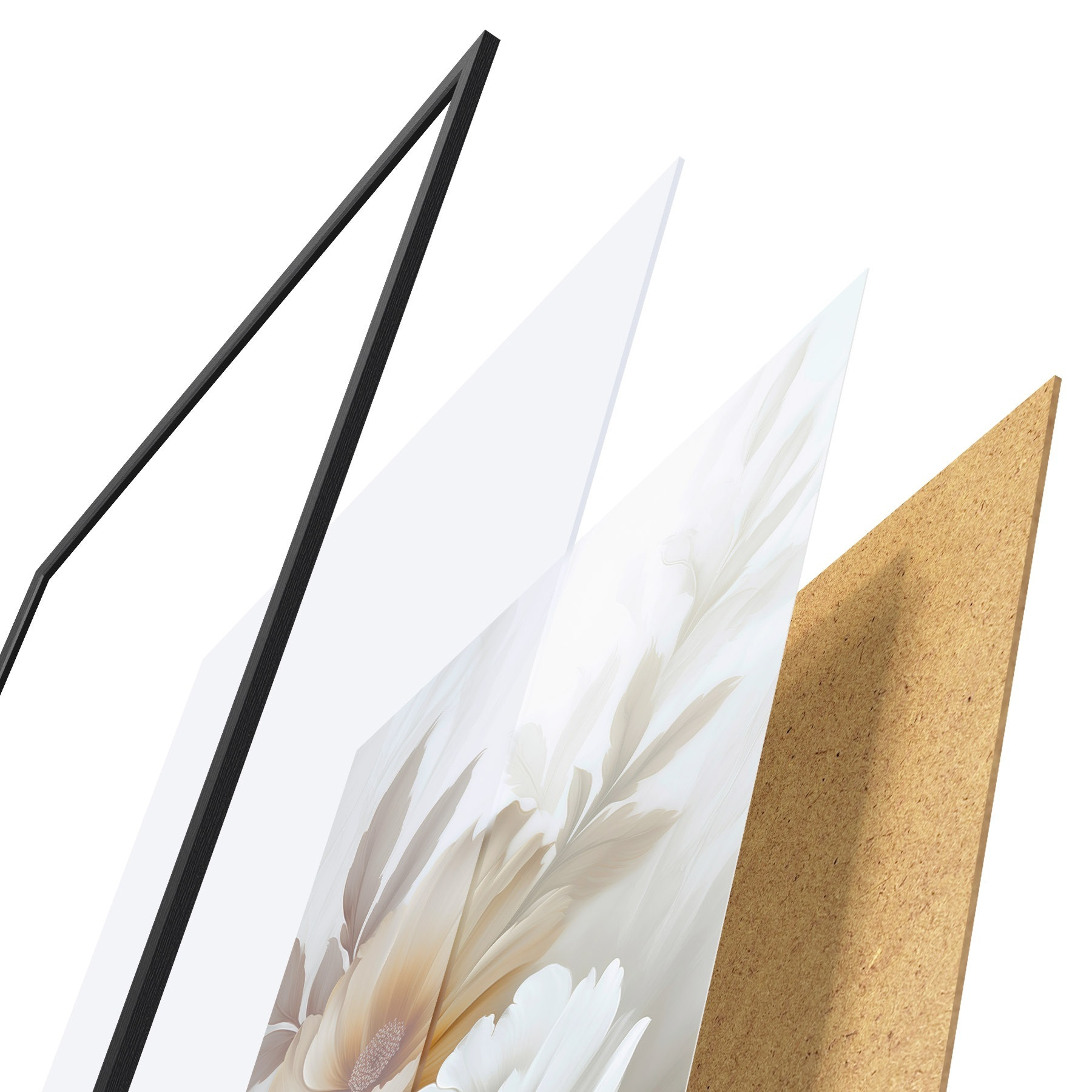 Plakát se skládá z rámu, plexiskla, tištěného obrazu a dřevotřískového podkladu. Díky úchytům na zadní straně lze plakát ihned zavěsit na zeď.