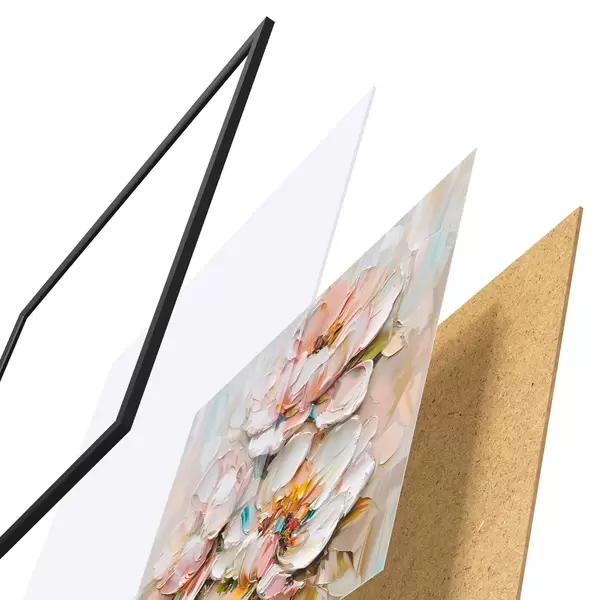 Plakát se skládá z rámu, plexiskla, tištěného obrazu a dřevotřískového podkladu. Díky úchytům na zadní straně lze plakát ihned zavěsit na zeď.