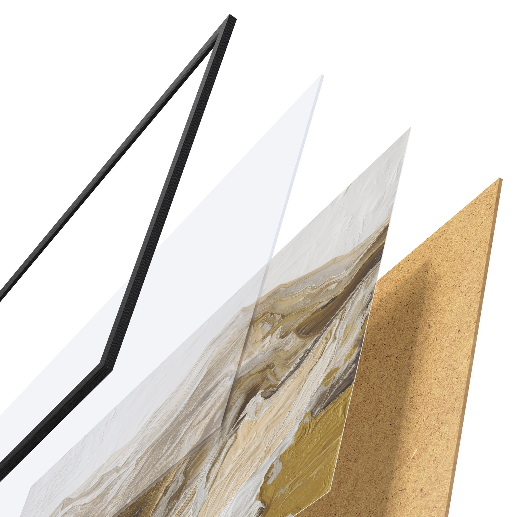 Plakát se skládá z rámu, plexiskla, tištěného obrazu a dřevotřískového podkladu. Díky úchytům na zadní straně lze plakát ihned zavěsit na zeď.