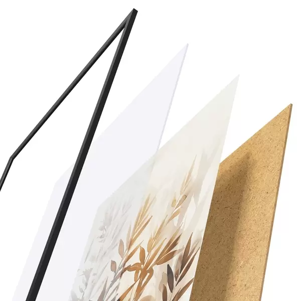 Plakát se skládá z rámu, plexiskla, tištěného obrazu a dřevotřískového podkladu. Díky úchytům na zadní straně lze plakát ihned zavěsit na zeď.