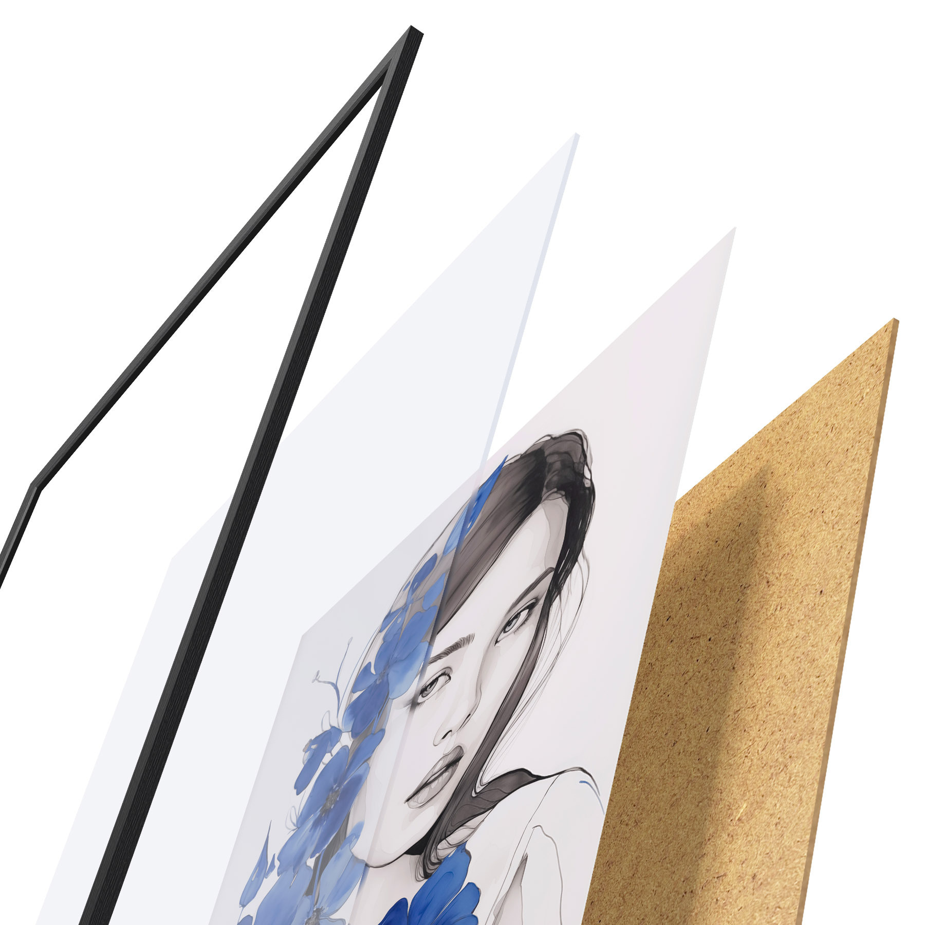 Plakát se skládá z rámu, plexiskla, tištěného obrazu a dřevotřískového podkladu. Díky úchytům na zadní straně lze plakát ihned zavěsit na zeď.