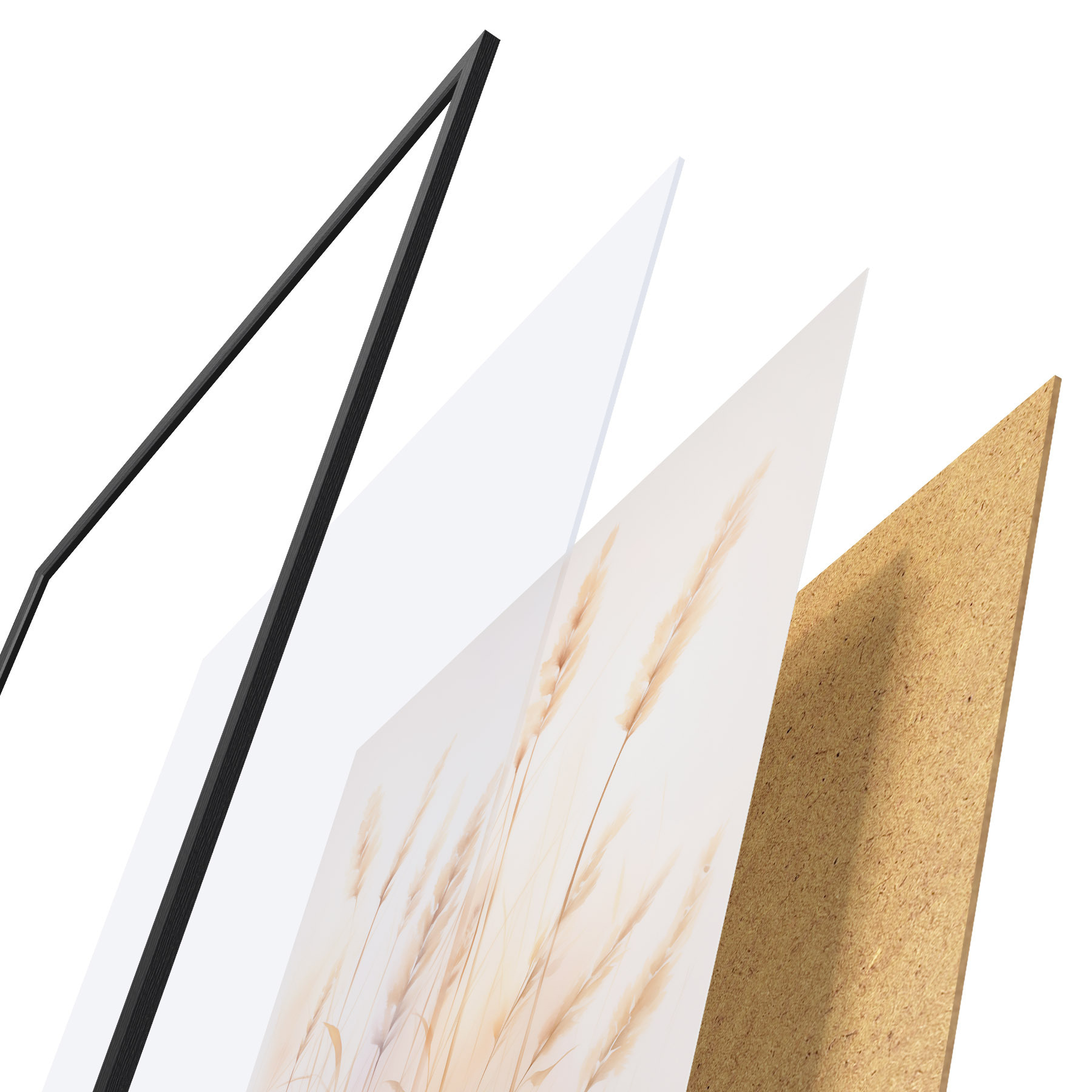 Plakát se skládá z rámu, plexiskla, tištěného obrazu a dřevotřískového podkladu. Díky úchytům na zadní straně lze plakát ihned zavěsit na zeď.