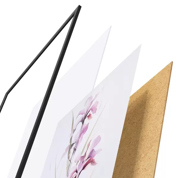 Plakát se skládá z rámu, plexiskla, tištěného obrazu a dřevotřískového podkladu. Díky úchytům na zadní straně lze plakát ihned zavěsit na zeď.
