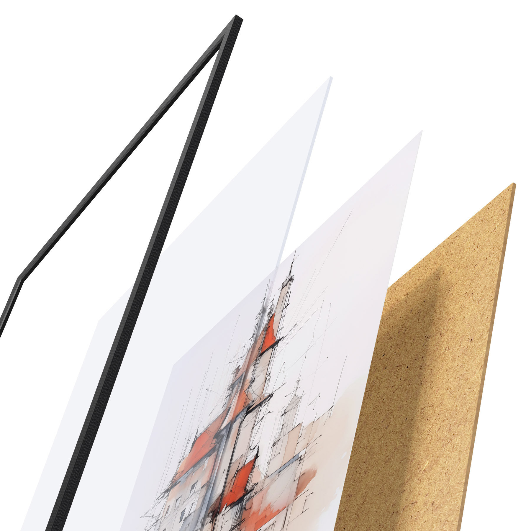 Plakát se skládá z rámu, plexiskla, tištěného obrazu a dřevotřískového podkladu. Díky úchytům na zadní straně lze plakát ihned zavěsit na zeď.
