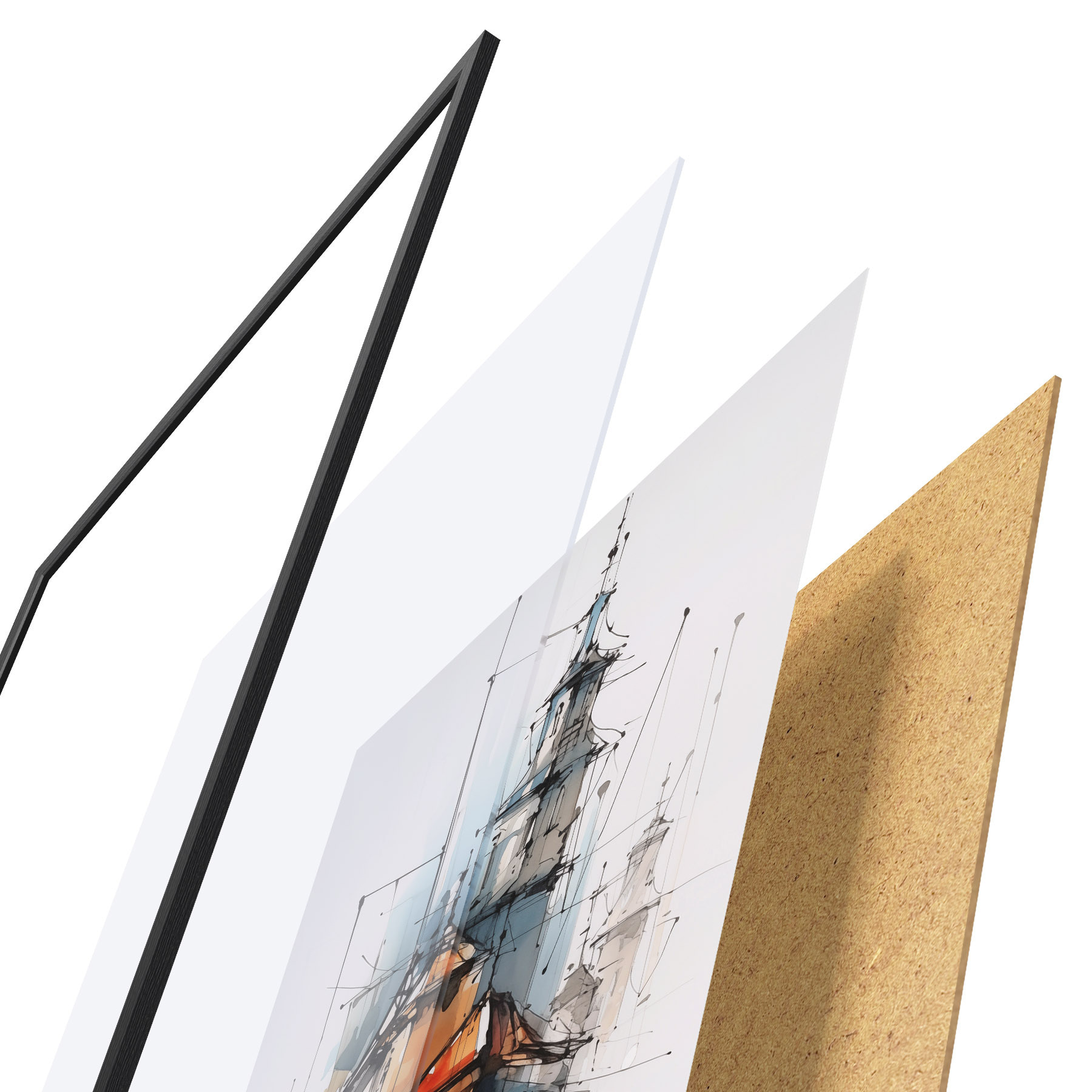 Plakát se skládá z rámu, plexiskla, tištěného obrazu a dřevotřískového podkladu. Díky úchytům na zadní straně lze plakát ihned zavěsit na zeď.