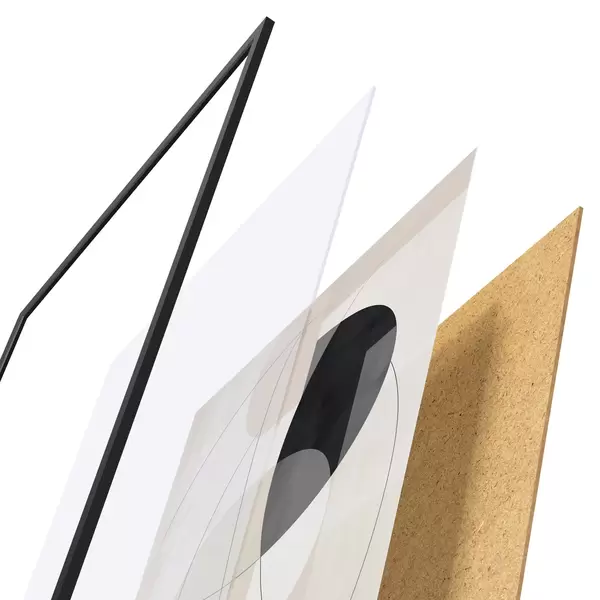 Plakát se skládá z rámu, plexiskla, tištěného obrazu a dřevotřískového podkladu. Díky úchytům na zadní straně lze plakát ihned zavěsit na zeď.