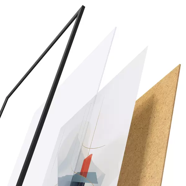 Plakát se skládá z rámu, plexiskla, tištěného obrazu a dřevotřískového podkladu. Díky úchytům na zadní straně lze plakát ihned zavěsit na zeď.