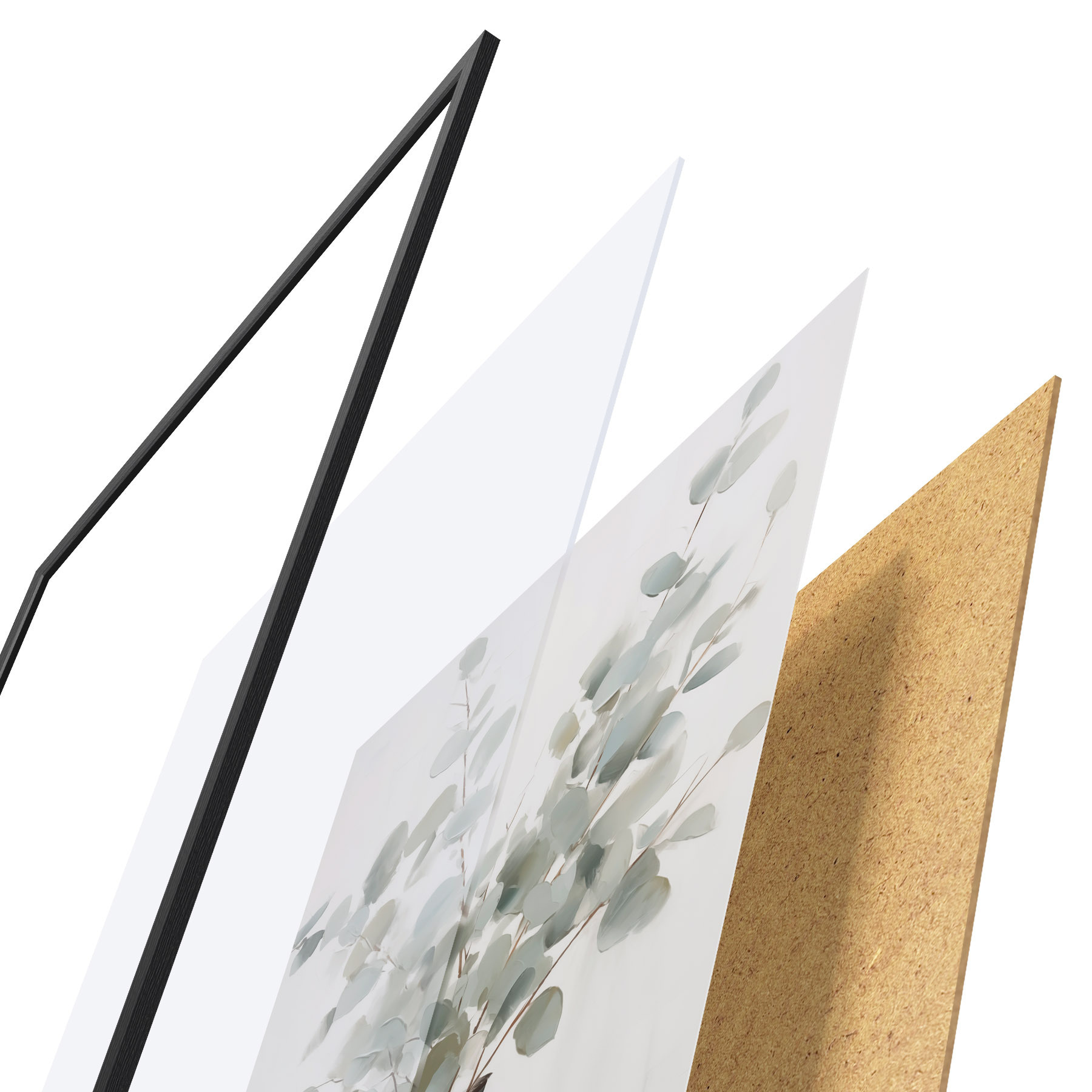 Plakát se skládá z rámu, plexiskla, tištěného obrazu a dřevotřískového podkladu. Díky úchytům na zadní straně lze plakát ihned zavěsit na zeď.