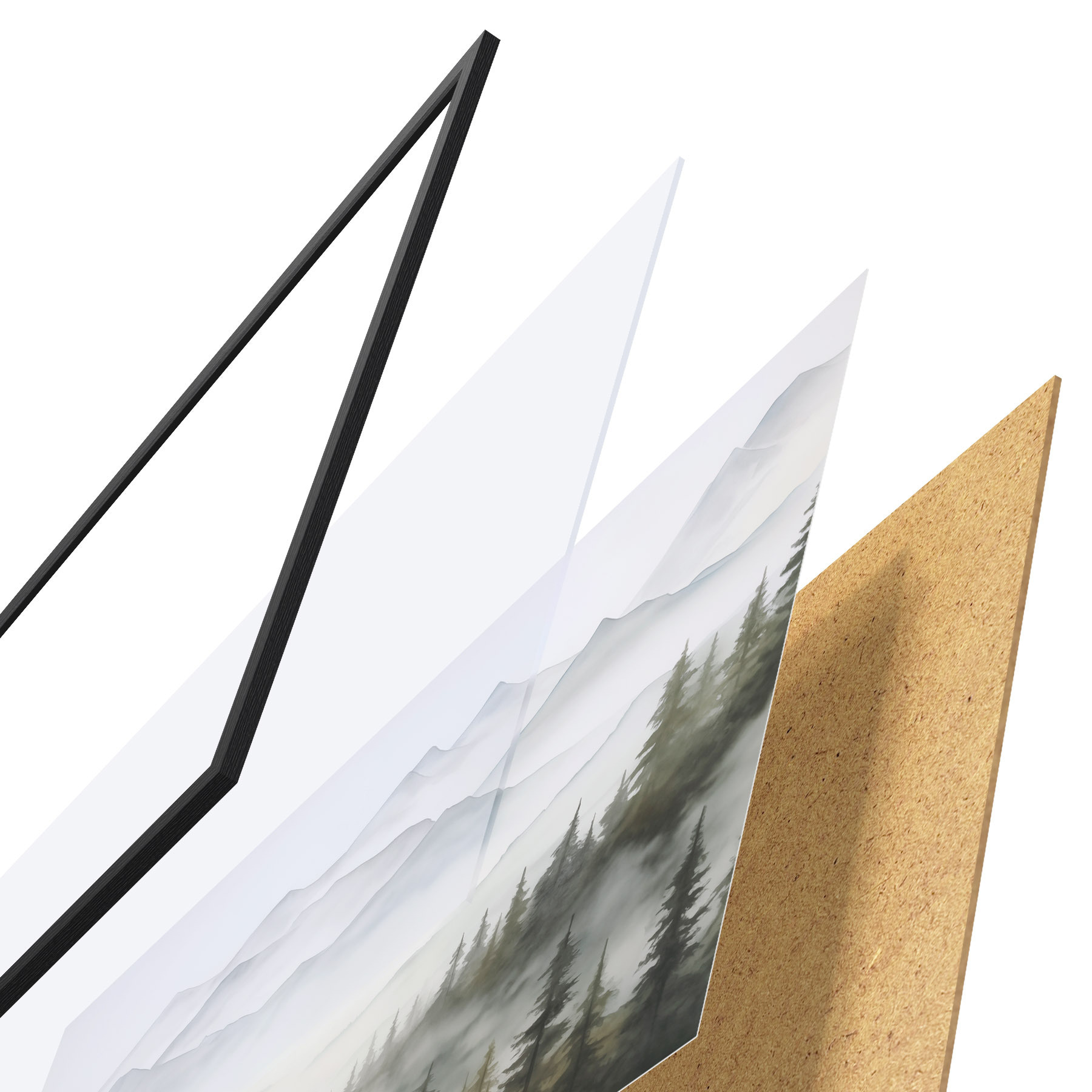 Plakát se skládá z rámu, plexiskla, tištěného obrazu a dřevotřískového podkladu. Díky úchytům na zadní straně lze plakát ihned zavěsit na zeď.