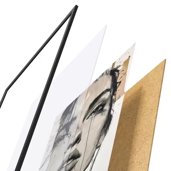 Plakát se skládá z rámu, plexiskla, tištěného obrazu a dřevotřískového podkladu. Díky úchytům na zadní straně lze plakát ihned zavěsit na zeď.