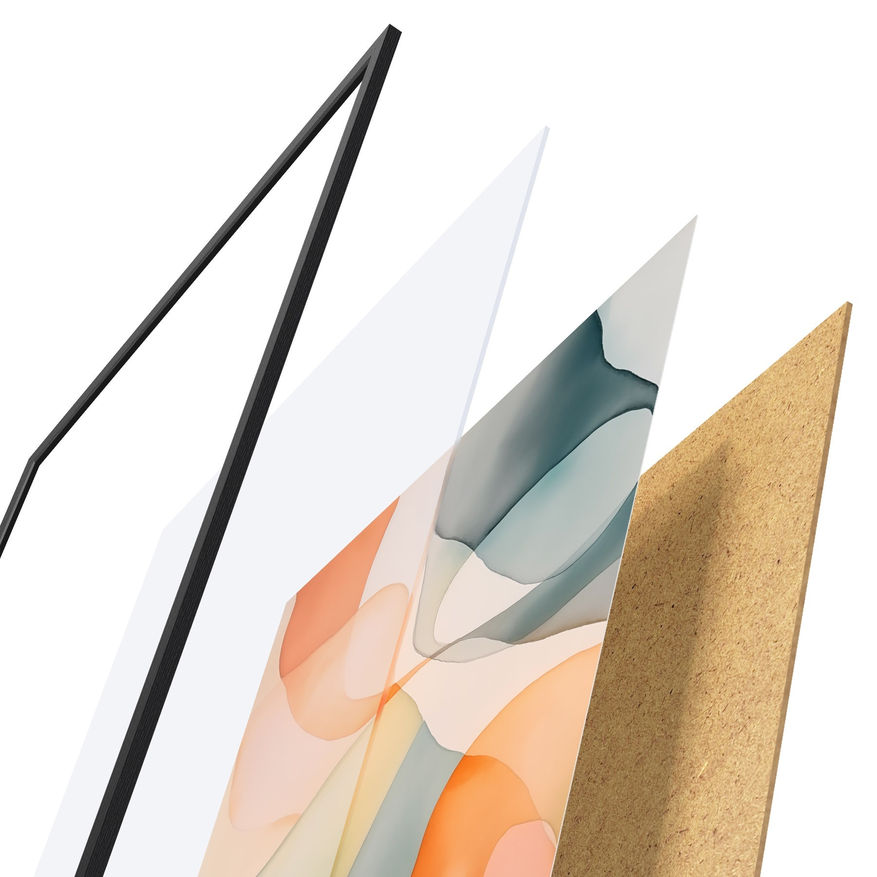 Plakát se skládá z rámu, plexiskla, tištěného obrazu a dřevotřískového podkladu. Díky úchytům na zadní straně lze plakát ihned zavěsit na zeď.