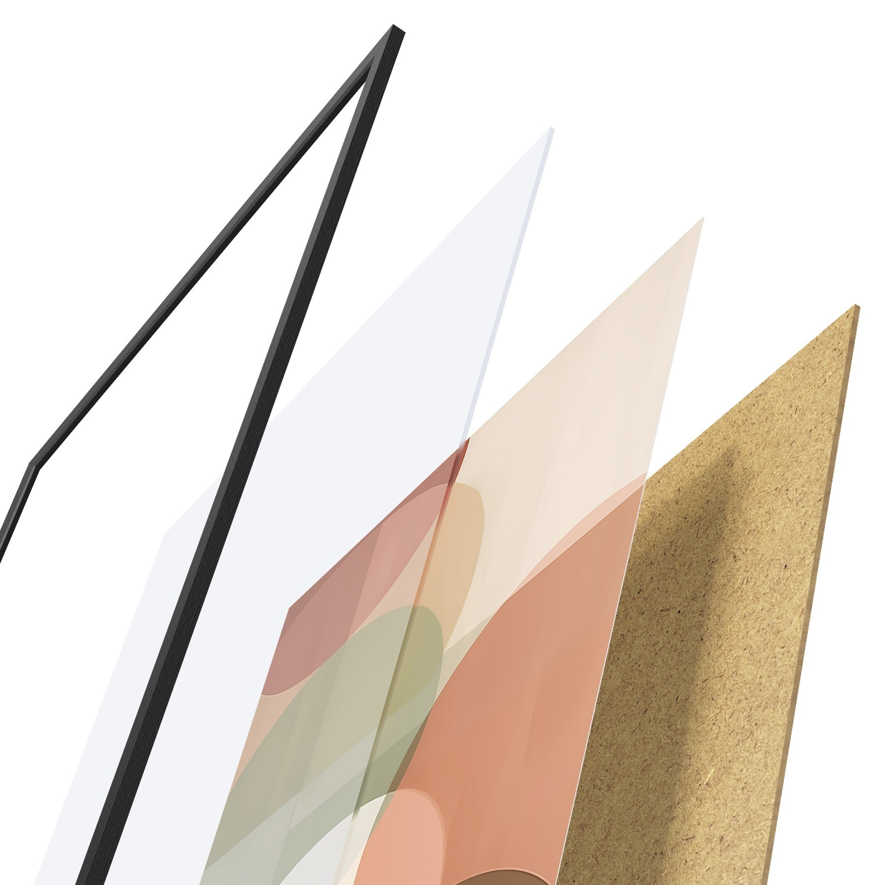 Plakát se skládá z rámu, plexiskla, tištěného obrazu a dřevotřískového podkladu. Díky úchytům na zadní straně lze plakát ihned zavěsit na zeď.
