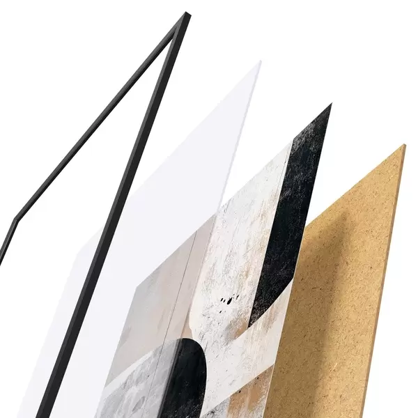 Plakát se skládá z rámu, plexiskla, tištěného obrazu a dřevotřískového podkladu. Díky úchytům na zadní straně lze plakát ihned zavěsit na zeď.