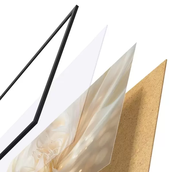 Plakát se skládá z rámu, plexiskla, tištěného obrazu a dřevotřískového podkladu. Díky úchytům na zadní straně lze plakát ihned zavěsit na zeď.