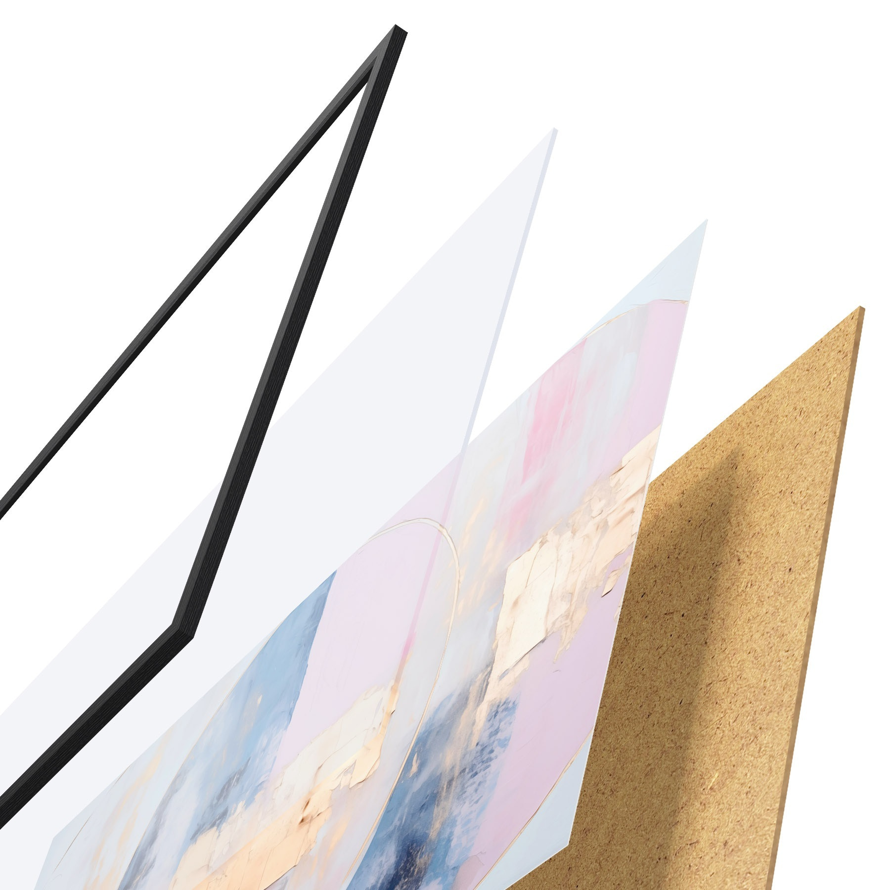 Plakát se skládá z rámu, plexiskla, tištěného obrazu a dřevotřískového podkladu. Díky úchytům na zadní straně lze plakát ihned zavěsit na zeď.
