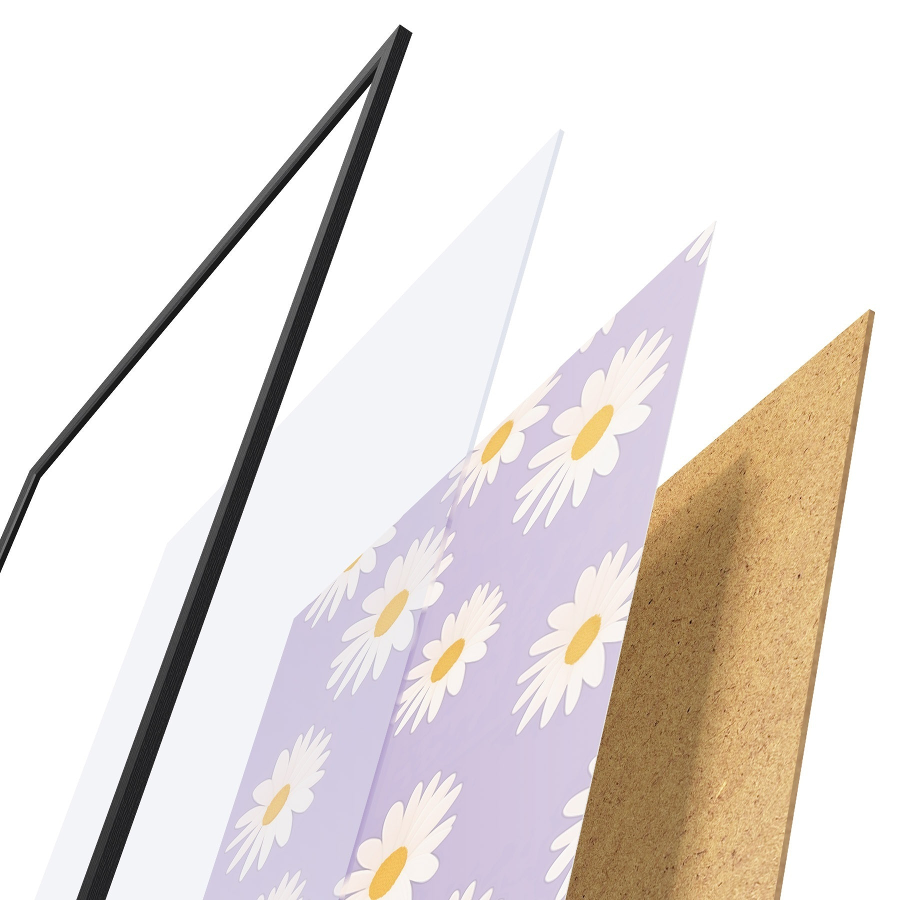 Plakát se skládá z rámu, plexiskla, tištěného obrazu a dřevotřískového podkladu. Díky úchytům na zadní straně lze plakát ihned zavěsit na zeď.
