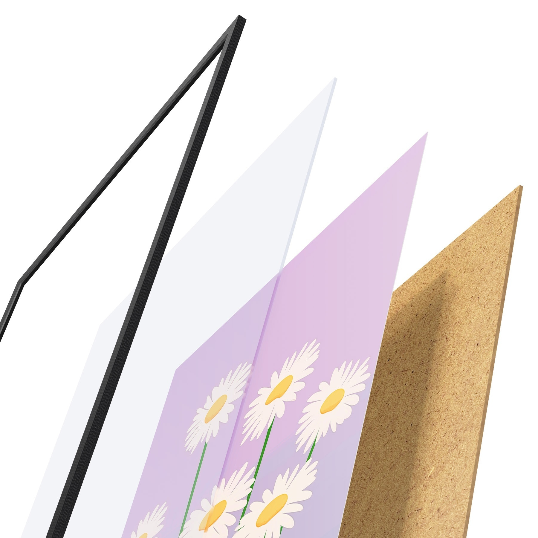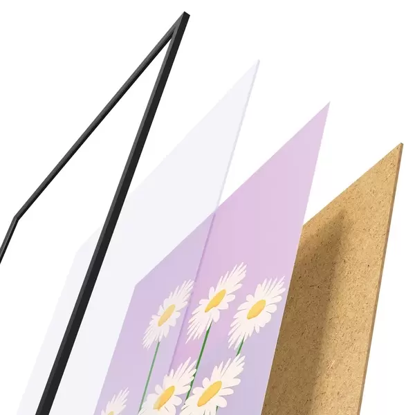 Plakát se skládá z rámu, plexiskla, tištěného obrazu a dřevotřískového podkladu. Díky úchytům na zadní straně lze plakát ihned zavěsit na zeď.