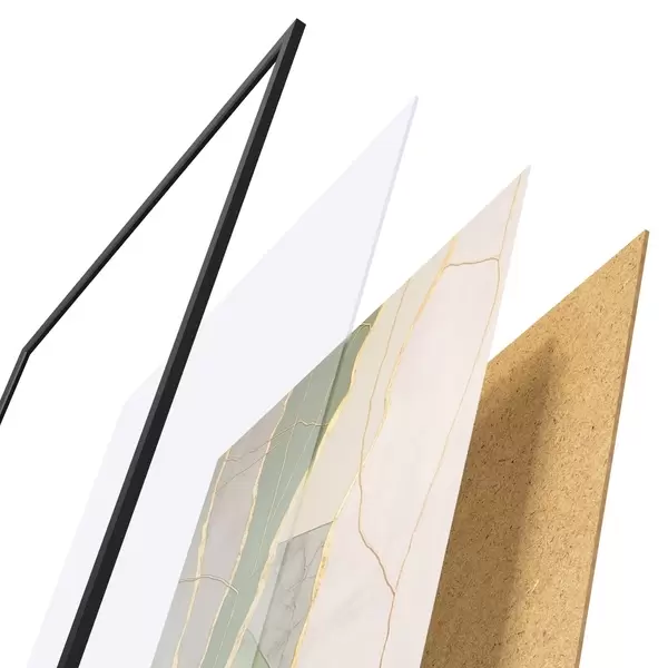 Plakát se skládá z rámu, plexiskla, tištěného obrazu a dřevotřískového podkladu. Díky úchytům na zadní straně lze plakát ihned zavěsit na zeď.