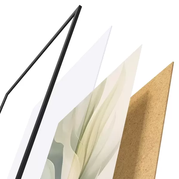 Plakát se skládá z rámu, plexiskla, tištěného obrazu a dřevotřískového podkladu. Díky úchytům na zadní straně lze plakát ihned zavěsit na zeď.