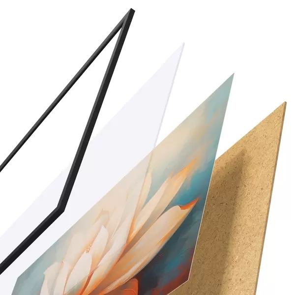 Plakát se skládá z rámu, plexiskla, tištěného obrazu a dřevotřískového podkladu. Díky úchytům na zadní straně lze plakát ihned zavěsit na zeď.