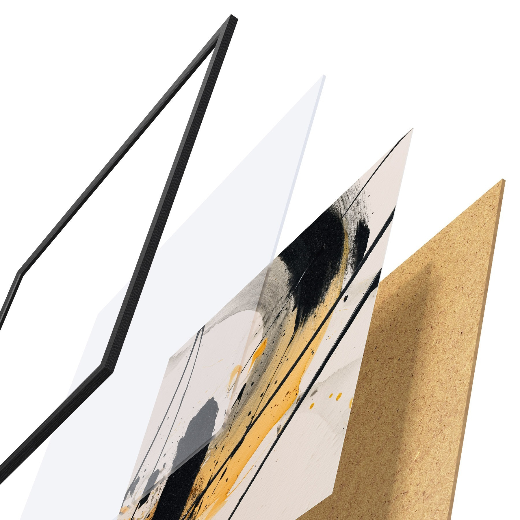 Plakát se skládá z rámu, plexiskla, tištěného obrazu a dřevotřískového podkladu. Díky úchytům na zadní straně lze plakát ihned zavěsit na zeď.