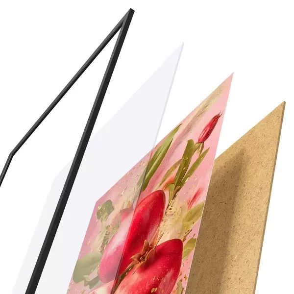 Plakát se skládá z rámu, plexiskla, tištěného obrazu a dřevotřískového podkladu. Díky úchytům na zadní straně lze plakát ihned zavěsit na zeď.