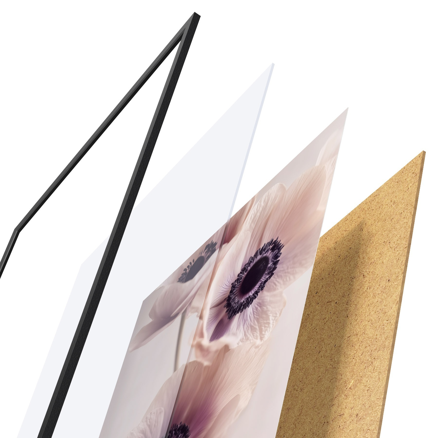 Plakát se skládá z rámu, plexiskla, tištěného obrazu a dřevotřískového podkladu. Díky úchytům na zadní straně lze plakát ihned zavěsit na zeď.