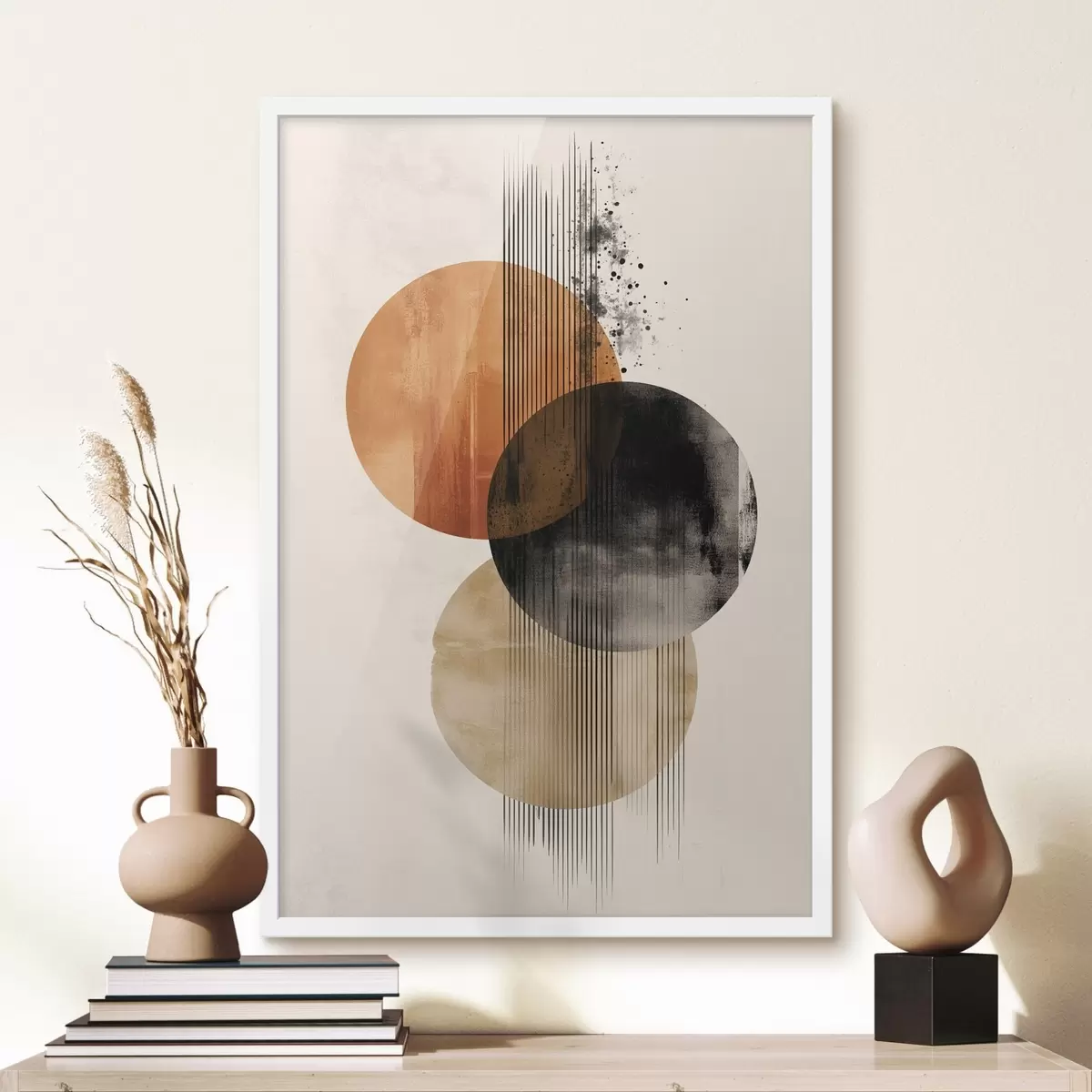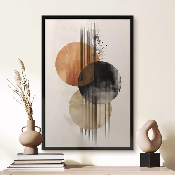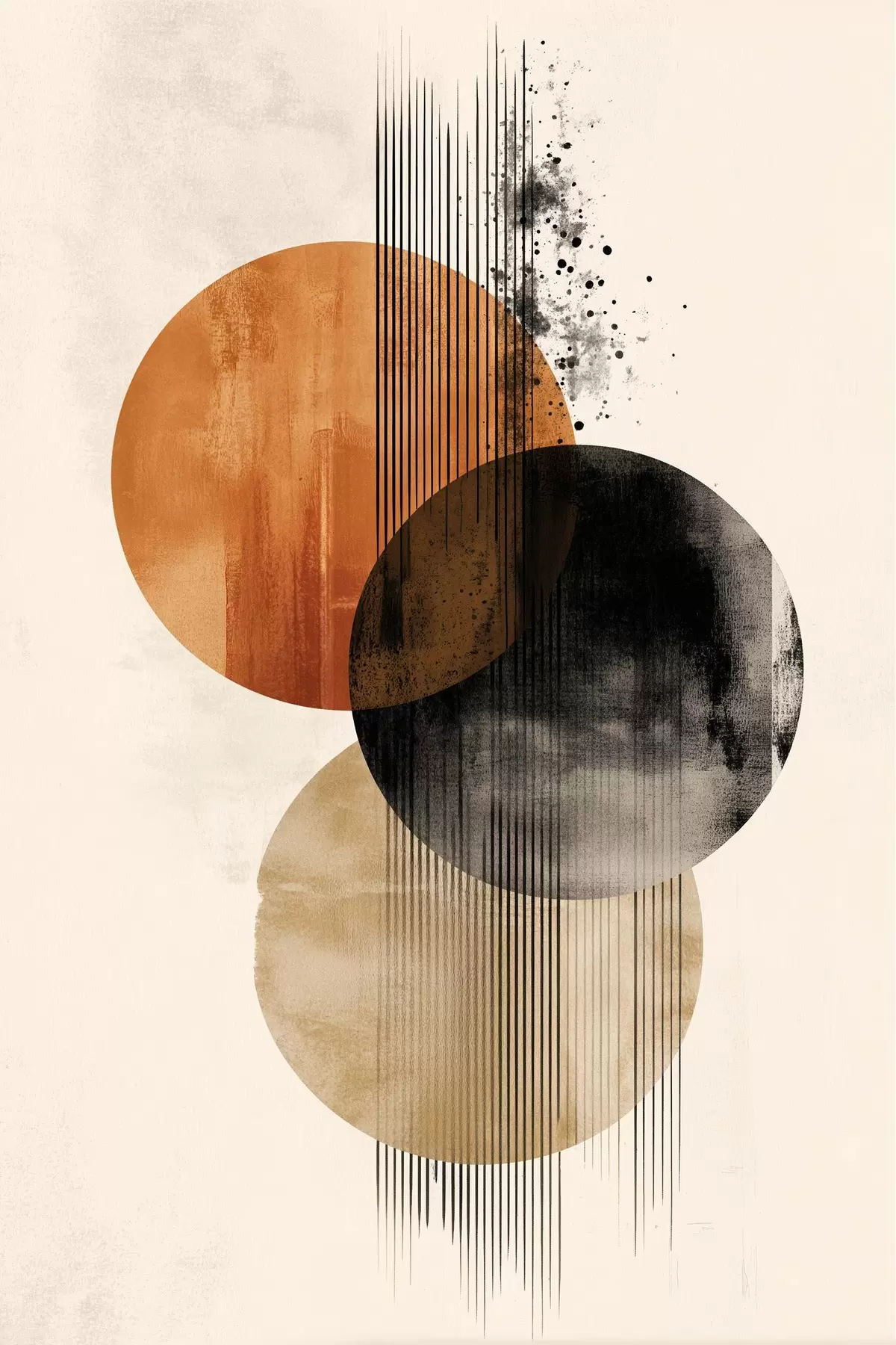 Poster Tři texturované kruhy s čarami v terakotově černé paletě Č. f45885