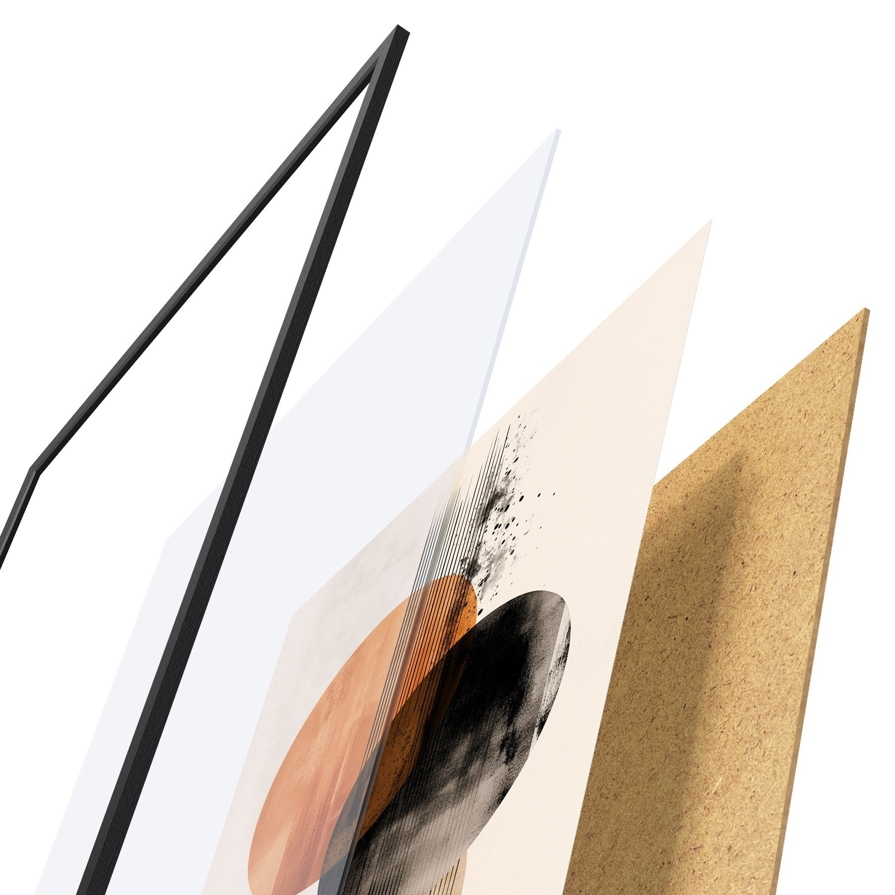 Plakát se skládá z rámu, plexiskla, tištěného obrazu a dřevotřískového podkladu. Díky úchytům na zadní straně lze plakát ihned zavěsit na zeď.