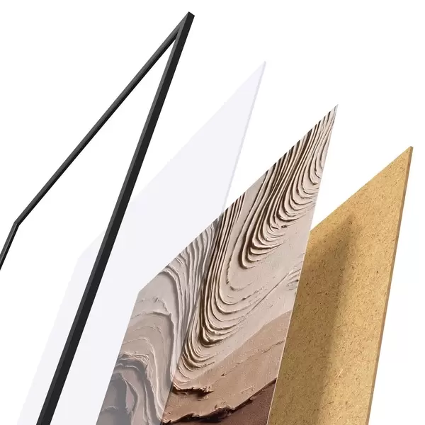Plakát se skládá z rámu, plexiskla, tištěného obrazu a dřevotřískového podkladu. Díky úchytům na zadní straně lze plakát ihned zavěsit na zeď.